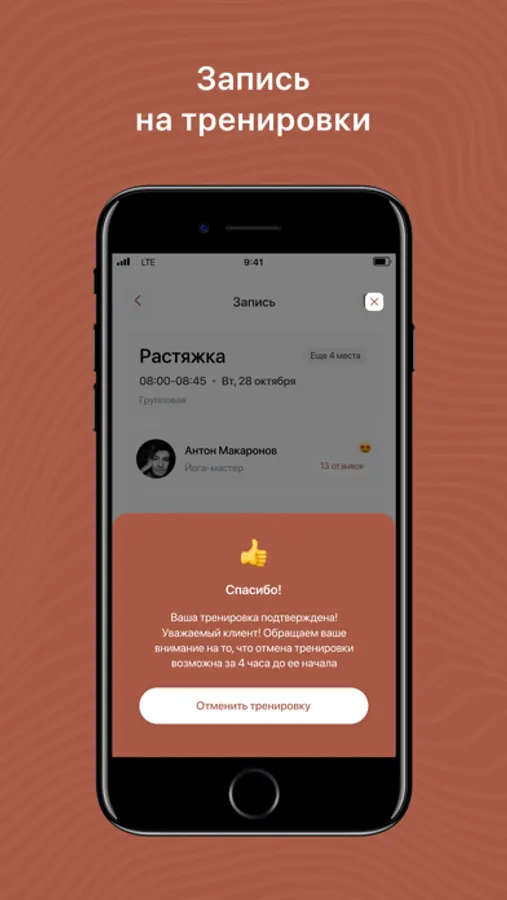 Управлять своими записями на тренировки (записаться - выписаться);