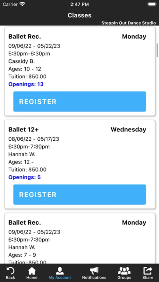 The S’O & F’O app allows you to manage your account with ease, register for classes, clinics, and special events. You'll also receive important notifications about class changes, closings, registration openings, special announcements, and upcoming events.