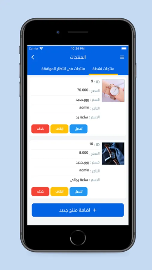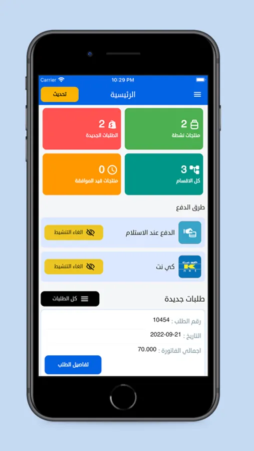 - A control panel application to manage products and orders for the main application
