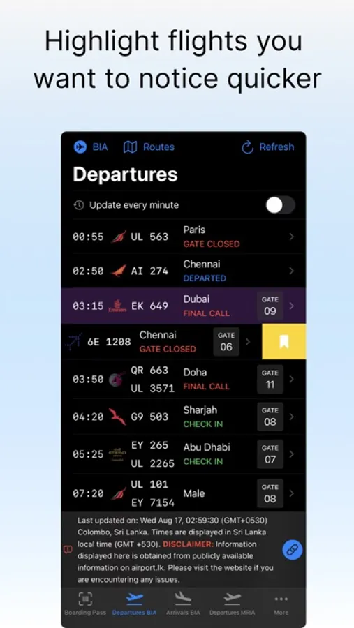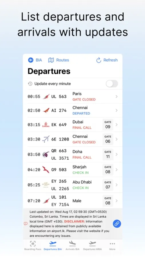 Get the up-to date flight arrival and departure times from the Sri Lankan Airports.