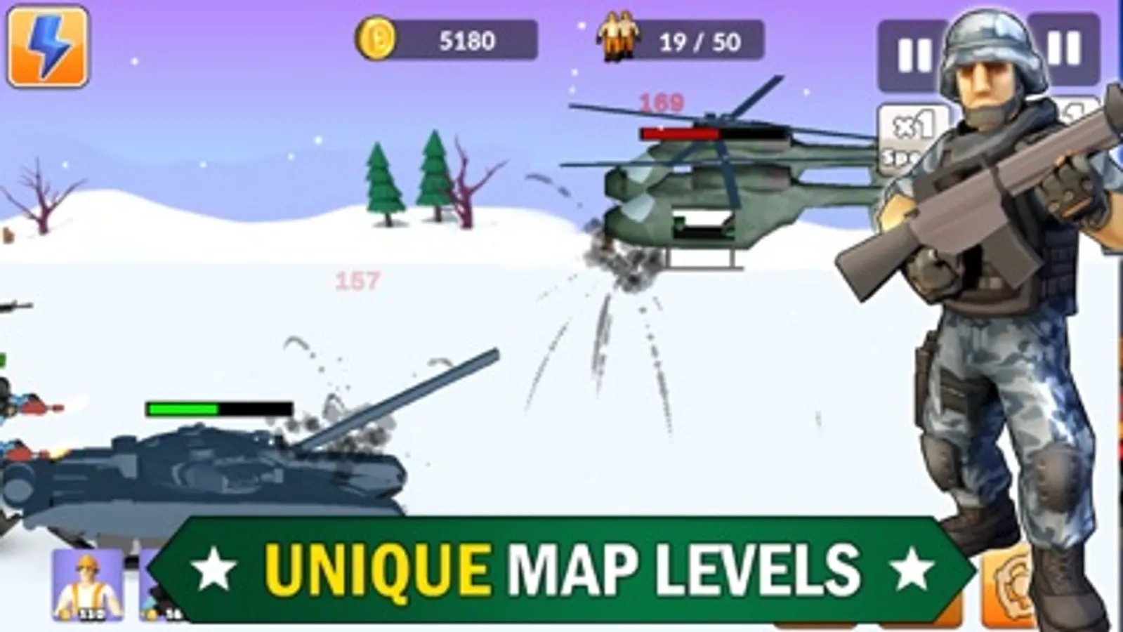 A new classic real-time military multiplayer strategy game about world war on your cell phone. Participate in online survival battles. Hold battles in the sky and on the ground. Develop your defense and attack strategy to defend your base and destroy the enemy. Hire the most powerful army and build military fortifications. Become the greatest general.