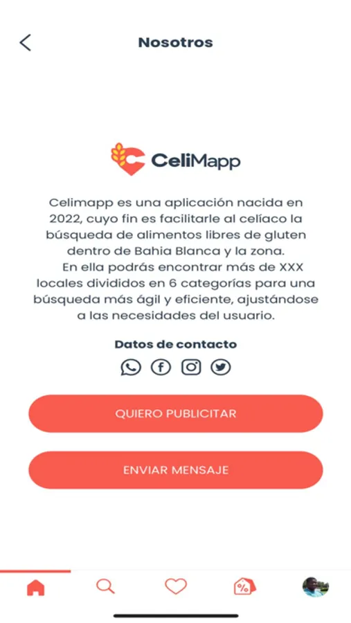 En CeliMapp encontrarás todos los lugares que ofrecen productos libres de gluten a lo largo del país, diferenciados en distintas categorías y filtradas por la ubicación para hacer más fácil su búsqueda. Las categorías son: Restó, bar y café; Mercados; Panadería; Heladería; Hoteles; A pedido.
