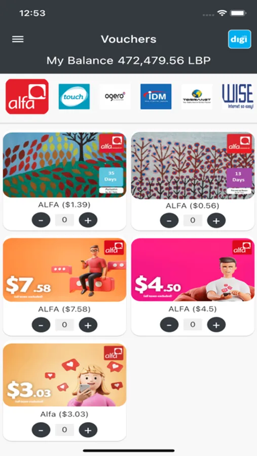 -Buy Vouchers (touch, alfa, IDM, TerraNet ...)
