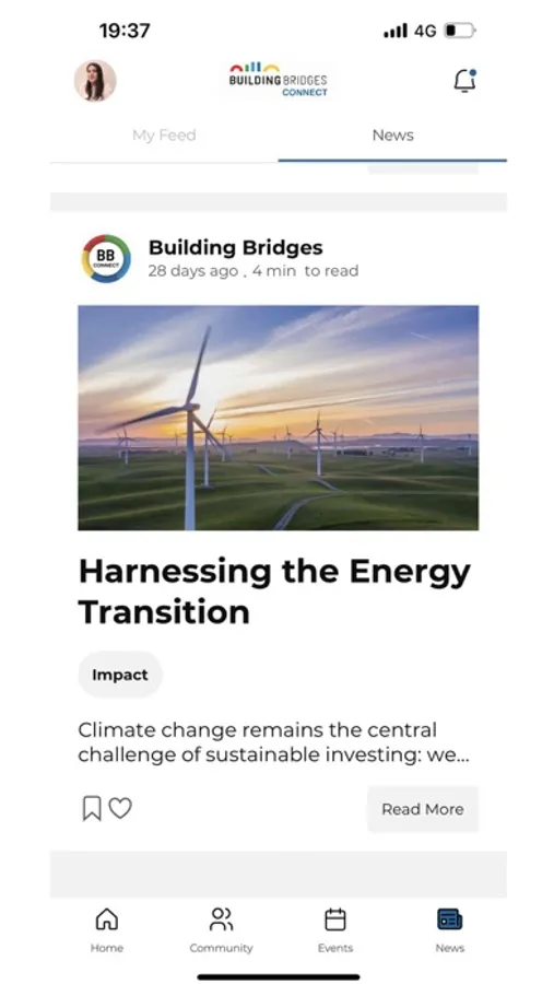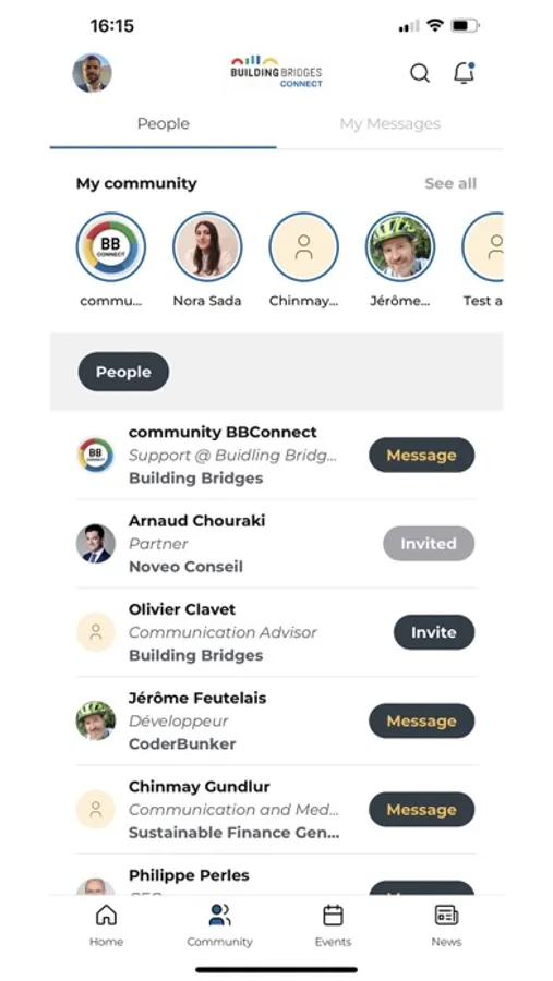 BB-Connect is an application that aims to connect members of the international, financial and developing community to advance the sustainable development goals. The app provides an opportunity to meet, brainstorm and network with other Building Bridges members and develop common projects to unleash the full potential of sustainable finance. BB Connect also offers regular updates on Building Bridges public events, informal gatherings, and news.