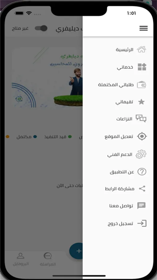 تطبيق محاسب ديليفري يعمل كوسيط مجاني بين رواد الأعمال والمحاسبين والذي تم تطويره من شركة محاسب ديليفري والذي يهدف من خلاله وصل الشركات وأصحاب الأعمال بأفضل المحاسبين المحترفين لمساعدتهم على انجاز أعمالهم المحاسبية والإدارية في أسرع وقت.