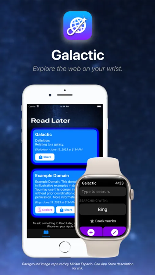 Get quick answers, check up on your favourite sites, and more right from your wrist; with Galactic – the new way to explore the web on Apple Watch.