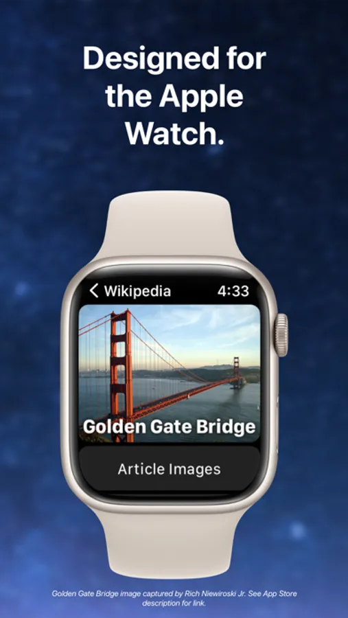 The Golden Gate Bridge image seen in the Wikipedia screenshot and second preview video was captured by Rich Niewiroski Jr.: