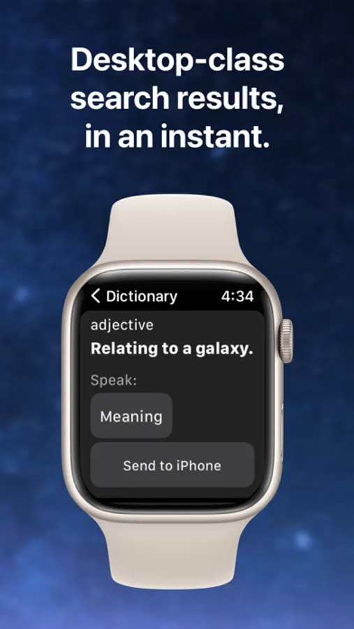 Retrieve desktop-class results and answers from around the web in an instant, using Galactic's five supported search engines – Bing, Wikipedia, The English Dictionary, Pexels, and DuckDuckGo Instant Answers – connecting you to quick research, detailed articles, and stunning images.