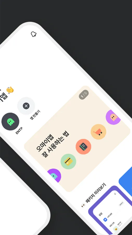 - 여러 툴을 조합하지 않고 오마이앱만으로 모바일 앱을 만들 수 있어요.