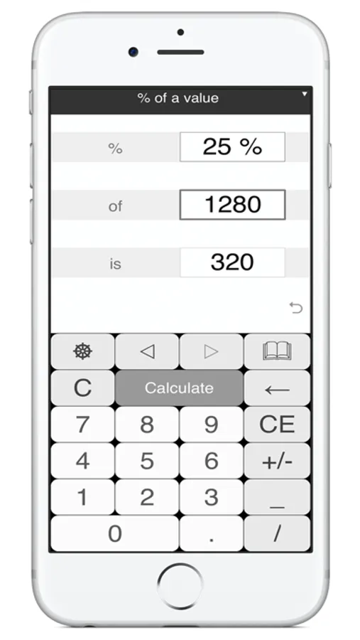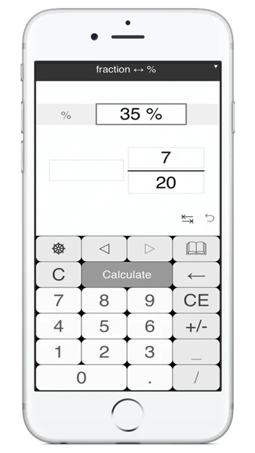 Supports fractional values for numbers and percentages as well. You can calculate 7 1/8 percent from 300. To enter 7 1/8 just type 7_1/8 on the percentage expert keyboard