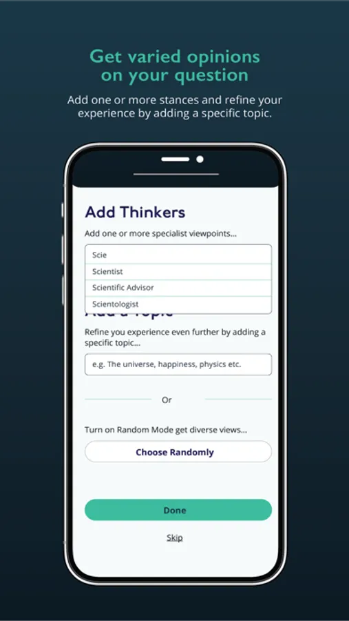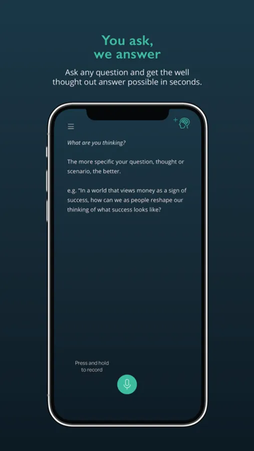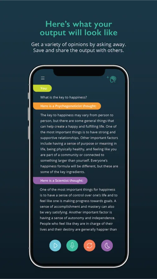 This app enables simple interaction with virtual AI expert personas of your choice on any topic and task you think of. Gain different perspectives or recommendations for your emerging needs in real-time interaction with your custom thinker selections or draw from the growing collective of other’s chosen thinkers. The direction and depth of the interaction is set by the nature and specificity of the thoughts, scenarios or requests you input. The AI responds accordingly with an answer, solution, scenario outplay or other appropriate responses in line with your new inputs. This makes it suitable for most ages in various productivity, educational, creative and fun use contexts where it can boost the users’ cognition and creativity via multi-disciplinary and embracive knowledge of the AI applied in any endeavour driven by the user.