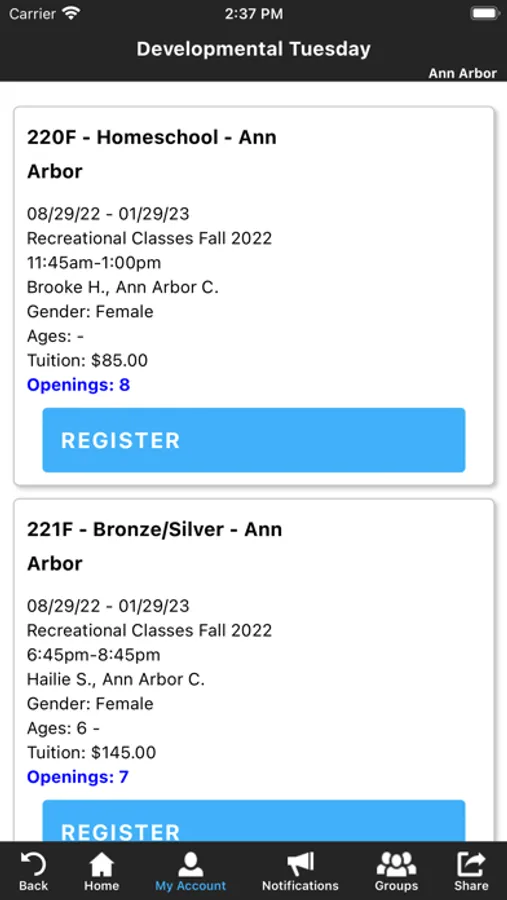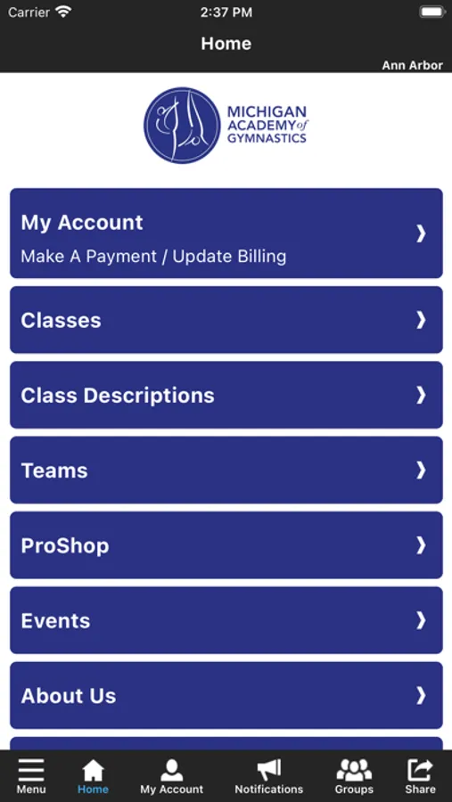 The Michigan Academy of Gymnastics app allows you to manage your account with ease, register for classes, parties, and special events. You'll also receive important notifications about class changes, closings, registration openings, special announcements, and upcoming events.