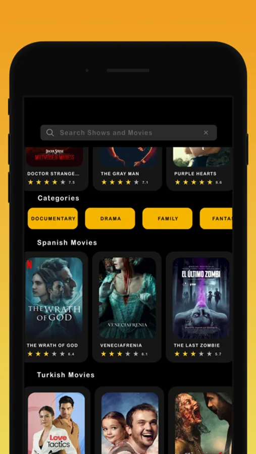All movies & Series: hollywood, bollywood, british, korean, japan.