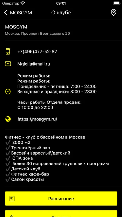 С помощью приложения вы можете следить за новостями, расписанием клуба, оперативно получать информацию об изменениях в расписании и специальных предложениях.