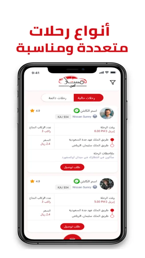 يهدف تطبيق مسار آمن على توفير خدمة سلسة بأسعار في متناول اليد. و قد كان تطبيق مسار هو الأول من نوعه في السعودية بتوفيره لخدمة حجز المشاوير بين المدن وداخلها بطريقة حديثه ومبتكره. هدفنا الأول هو تسهيل حياتك السريعة دون القلق بشأن متاعب النقل. فبلمسة واحدة، يأخذك تطبيق مسار الى أي مكان و في أي وقت يرضيك!