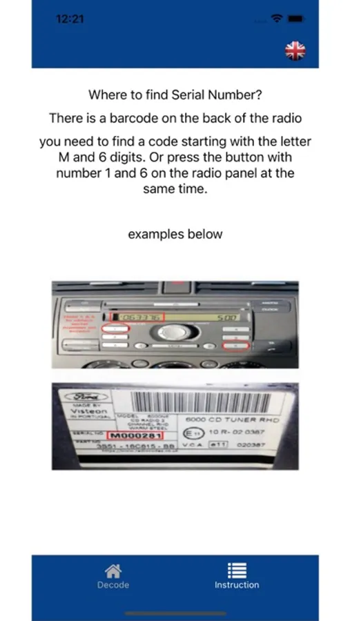 Radio code decoding application in Ford M series cars