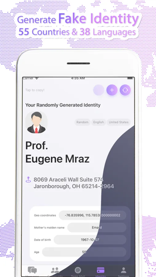 * Fake Identity Generator (name set, address, gender, county, extra info)