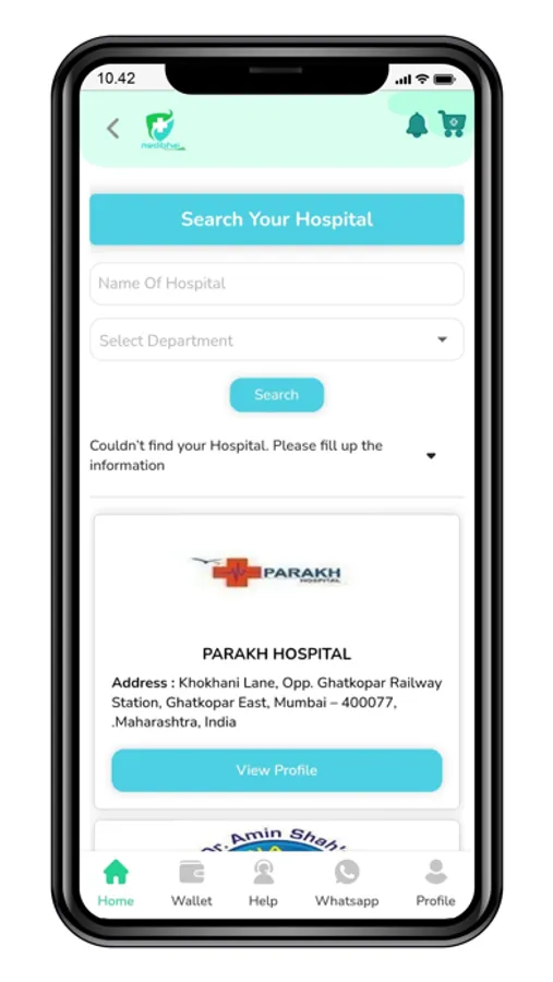 Insurance network – Insurance companies and third-party administrators empaneled with the hospital for cashless health insurance payments will be displayed