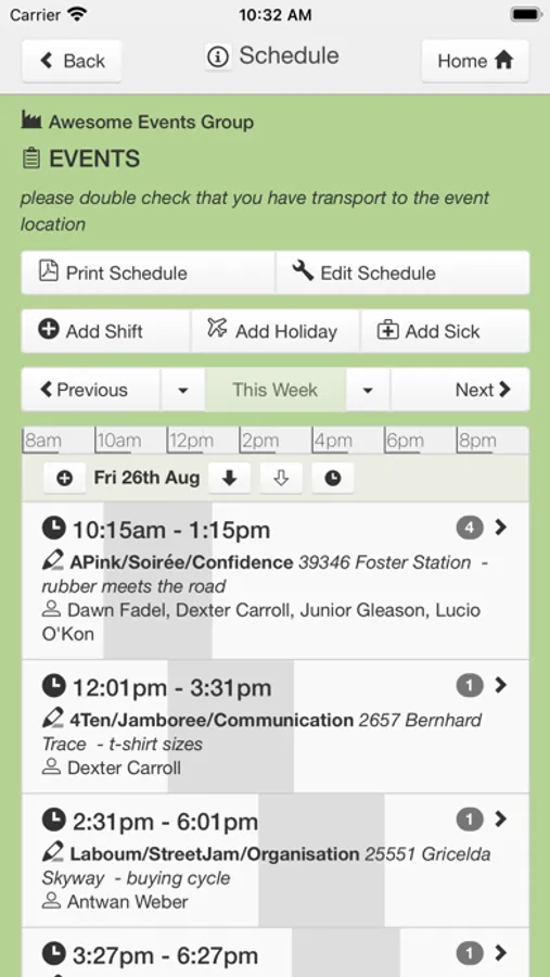 Managers can make changes to employee schedules and records, while employees can view and print their schedules directly from their iPhone or iPad. Our app also allows for the addition, editing, and deletion of employee records, with the ability to quickly add employee photos and invite employees to access the schedule with their own ShiftApp user account.