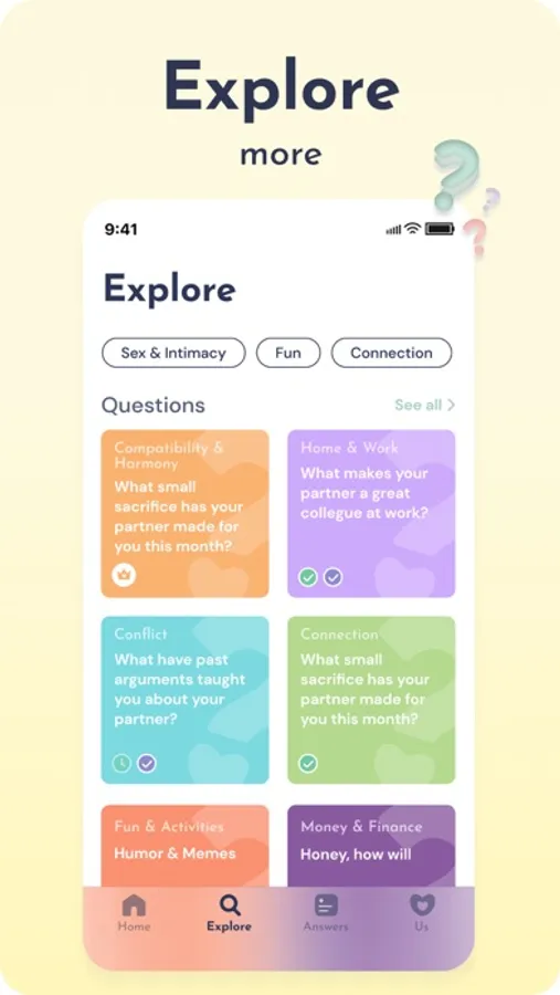 As an everyday routine, you can answer daily questions prepared by experts. You cannot see your partner's answer until both of you answered.