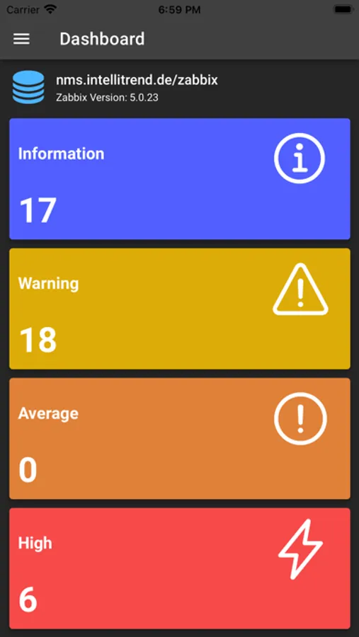 IntelliMon Mobile for Zabbix is developed by the official German Zabbix Premium Partner IntelliTrend GmbH for the Open Source Software Zabbix Network Monitoring. The app supports the 2 latest official Zabbix LTS versions and their major versions, i.e. 5.x.y and 6.x.y.