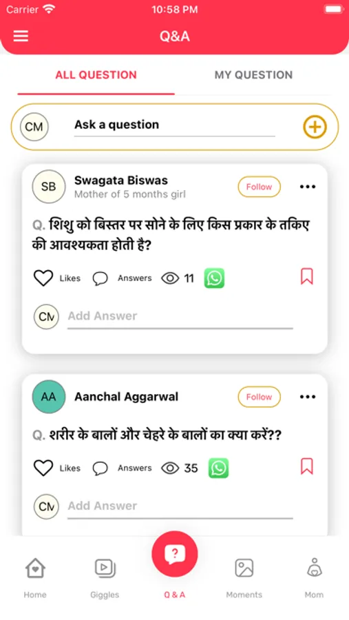 You can ask questions that you can't wait to ask your doctor and get answers 24*7 from a super-supportive members on the BabyCloud app WITHIN 5 MINUTES.