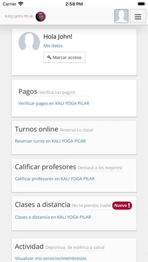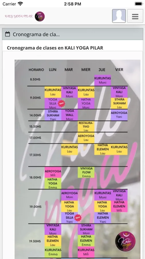 "La nueva App de KALI YOGA PILAR permite a todos los socios acceder a sus entrenamientos y planes nutricionales, reservar clases, consultar vencimientos, calificar profesores y mucho más!