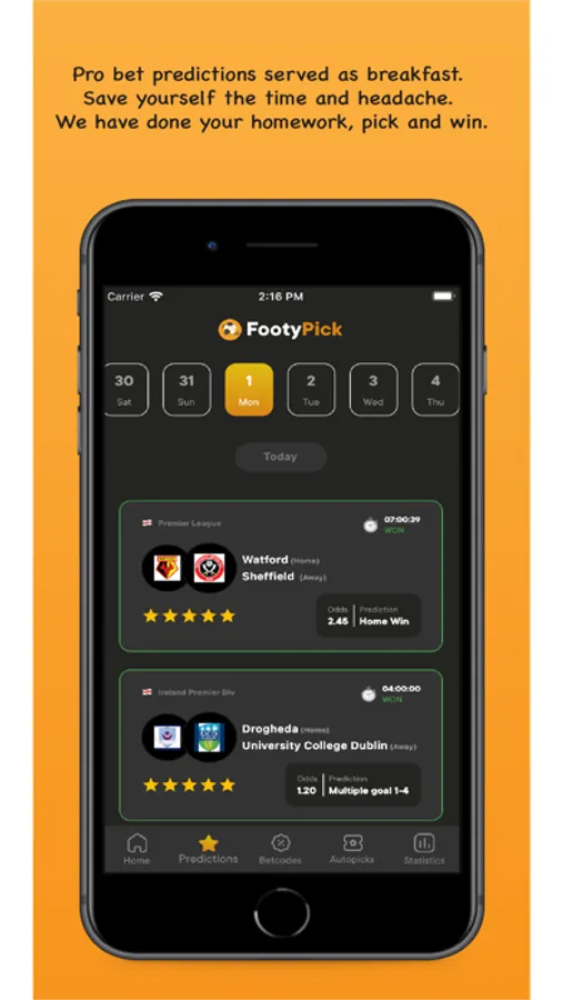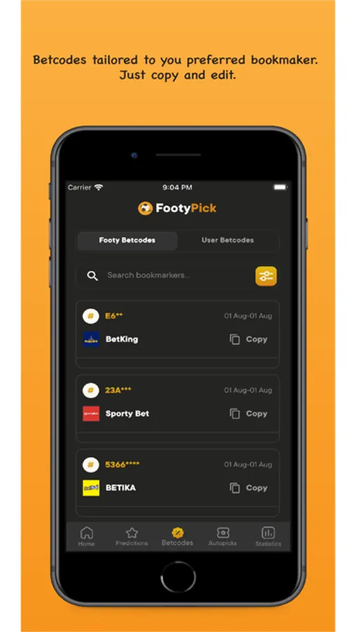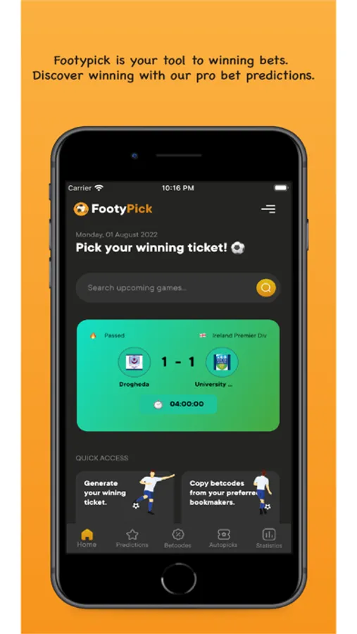 Footypick eliminates the long hours spent on bet forecasting with our Autopicks tool and bet code generator for different bookies.