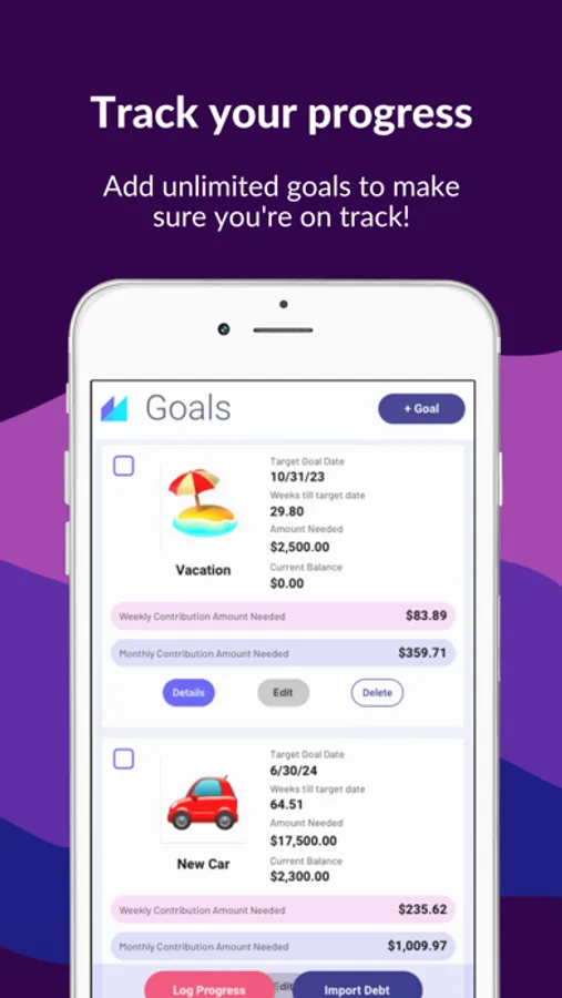 Add an unlimited number of goals and track your progress. You may be trying to save for a vacation or for a down payment on a new home. Much helps you keep track of your progress, understand how fast you will get there, and how much you need to save to achieve your goal on time.
