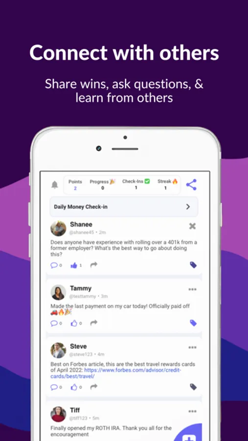 We're more than just a financial tool. We offer a supportive money community that will cheer you on as you reach milestones and helps answer any questions you may have on your journey. Feel less alone and more supported along the way.