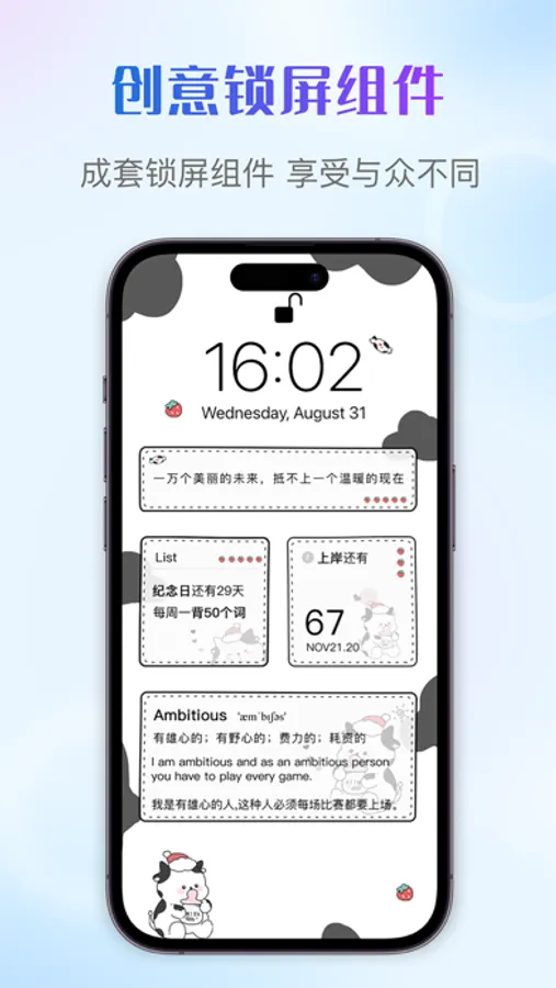 「泡芙锁屏」是一款拥有海量锁屏组件壁纸,为您精心挑选超多精美锁屏组件,满足对手机桌面不同的DIY要求,每天都是全新的开始,不用打开应用就可以每天更新,一次设置终身享用哦!