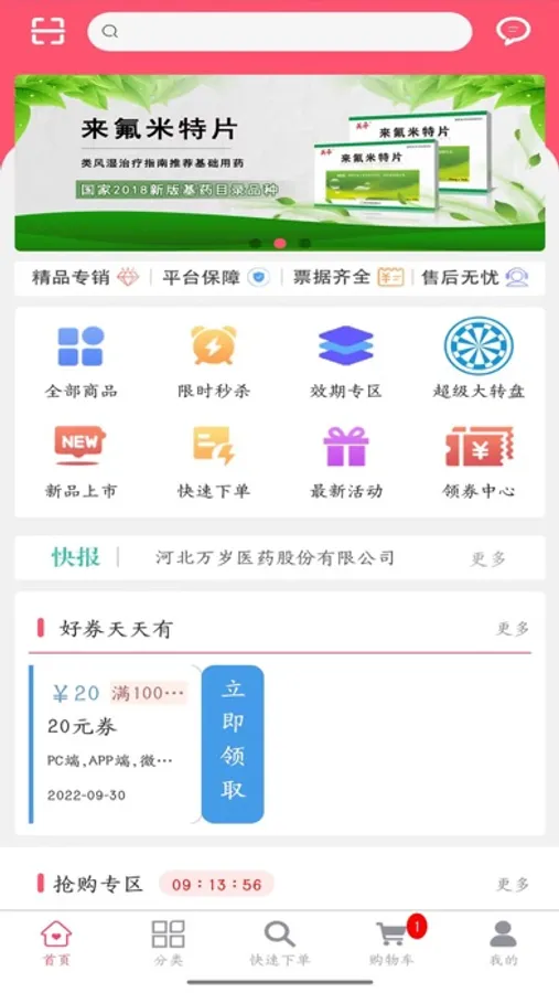 万岁健康为万岁医药股份旗下的新控销平台,以”让普药价值回归”为平台愿景,以”缔造团队与客户双赢”为平台使命,发挥自身工业优势,重磅打造独家医保产品,形成特色黄金单品系列,增强终端客户的市场竞争力,汇聚终端市场大容量产品,与华药,四药等百强工业深度合作,采用数字化直供新模式,压缩中间环节,严格控销服务,增强客户体验.为终端诊所、中小连锁、单体药店提供强大的发展助力。丰富的终端客户服务,学术提升,经营赋能,打造一个品质高,服务优,体验好的数字化直供平台.