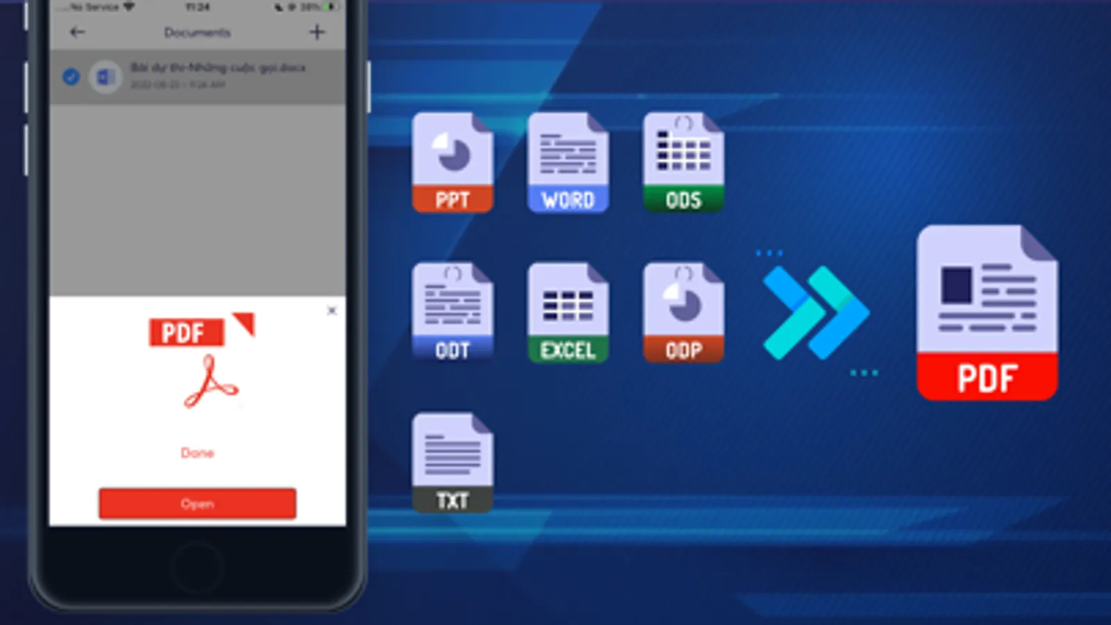 Turn on All your Editable documents to PDF files in 3 - 5 seconds.
