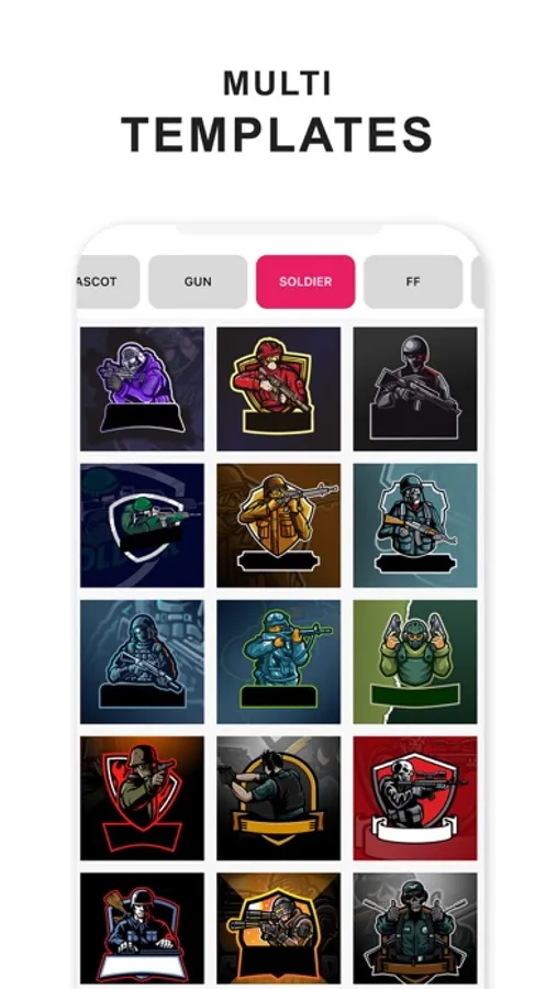Choose a logo from 300+ ready-to-use types of logo templates like a soldier, animal, samurai, ninja, assassin, gamer, archer, and skull mascot. Save and share your logos in high resolution.