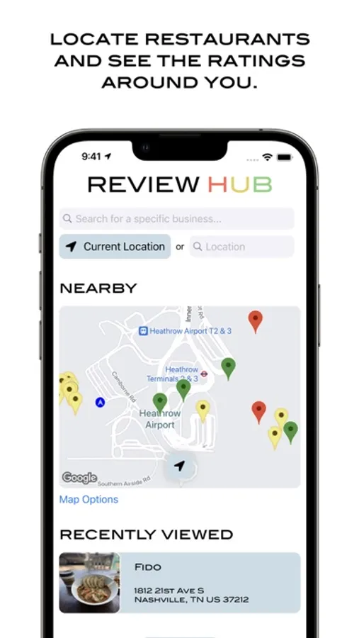 You're in the airport and need a decent bite before your flight or you just finished a long day of meetings and want something fast but with great reviews nearby. Locate top-rated places nearby using your current location and navigate with direct access to Apple Maps and Google Maps directions. Top-rated places are found across all review sources and displayed on a map with color coded indicators of each place's rating. Your location data is never stored on our servers or sold to third parties.