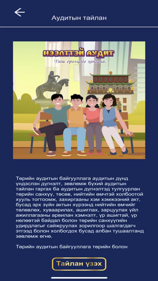 Монгол Услад Төрийн Хяналтын тогтолцоо үүсэж хөгжсөний 100 жилийн ойд зориулан Төрийн хяналтын тогтолцооны түүхэн хөгжлийн ач холбогдлыг олон нийтэд таниулах ажлын хүрээнд уг AR аппликейшнийг бүтээв.