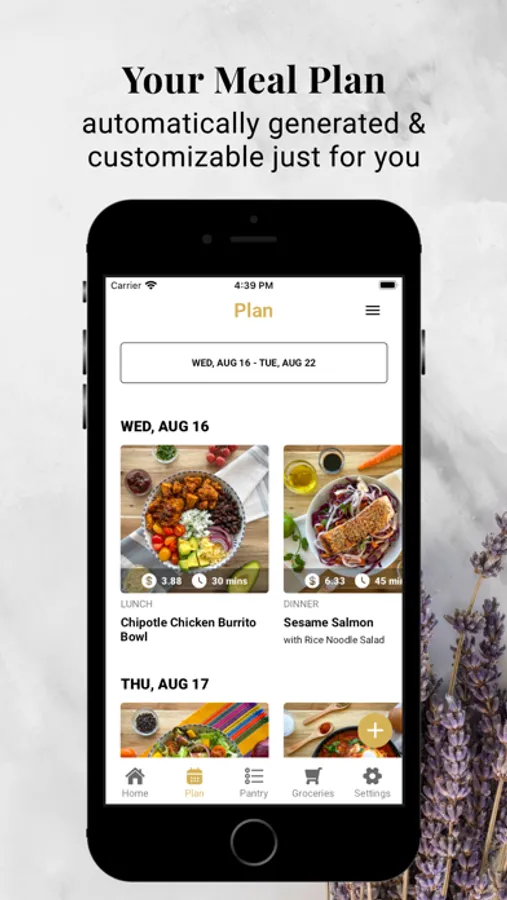 AUTOMATE YOUR MEAL PLANNING - No need to manually create meal plans ever again! Simply tell Budgeat which meals you want to plan for the week and it will do the rest. Don’t like a recipe? No problem! Customize your meal plan seamlessly by swapping out meals with alternative suggestions that still meet all of your criteria.
