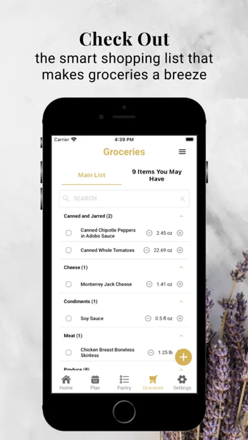 MAKE SHOPPING A BREEZE - once you’ve locked in the perfect meal plan Budgeat will instantly generate the shopping list for you! Add in any items outside of your meal plan as well to keep all your grocery needs in a single place. Check off items once you’re done shopping to effortlessly transfer them to your pantry.