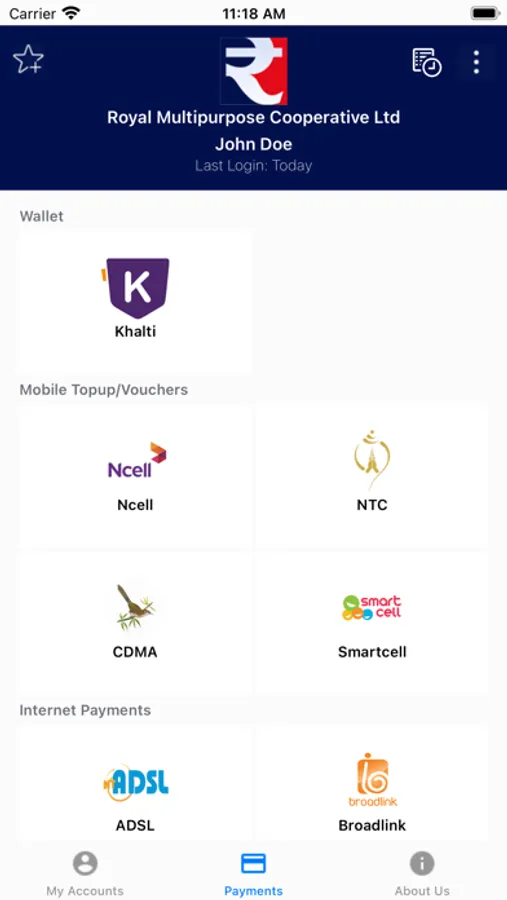 Royal Smart Banking allows its registered users to access their account in a convenient manner. It is secure and is available 24x7. The user can preview their balance, statements, request cheque book, transfer fund and online payments such as mobile topups and internet payments.