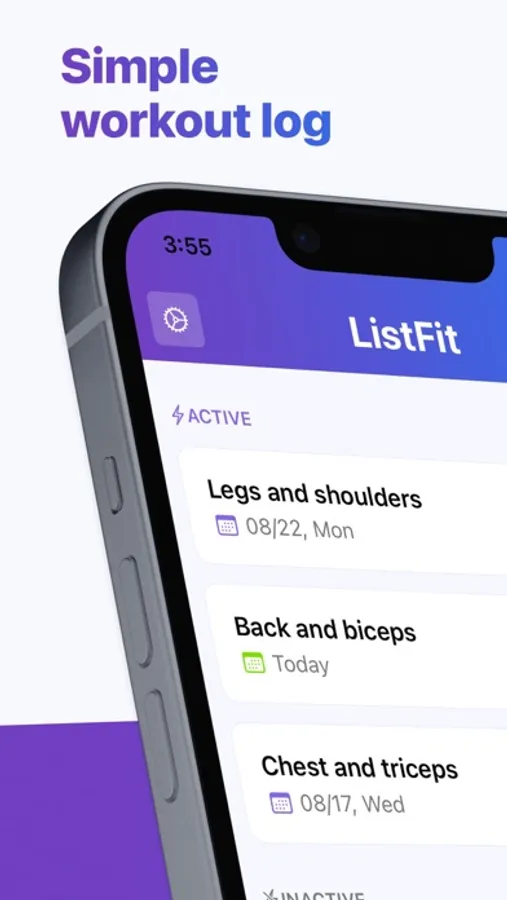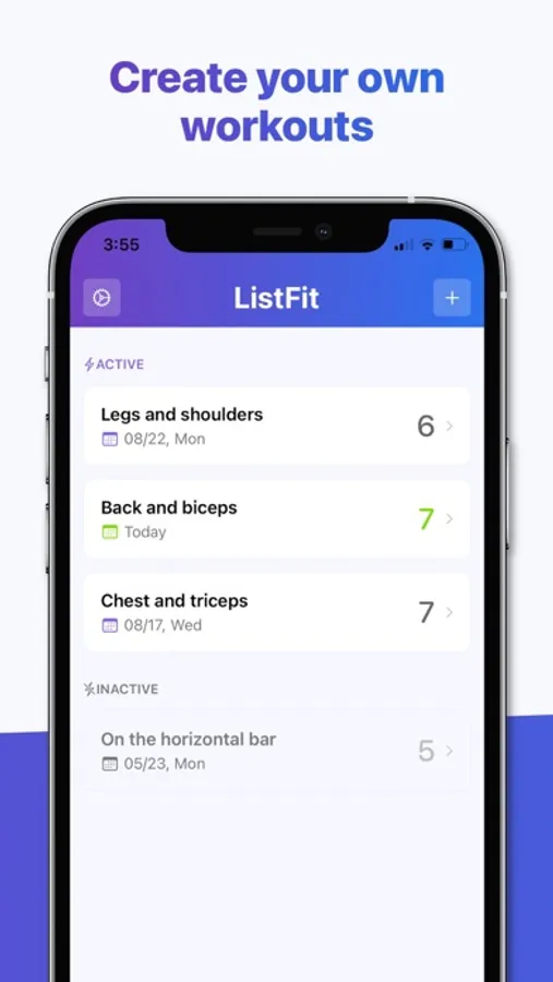 ⁃ Active and inactive lists. Place currently used workouts in the active list, and those completed or created for the future in the inactive list.