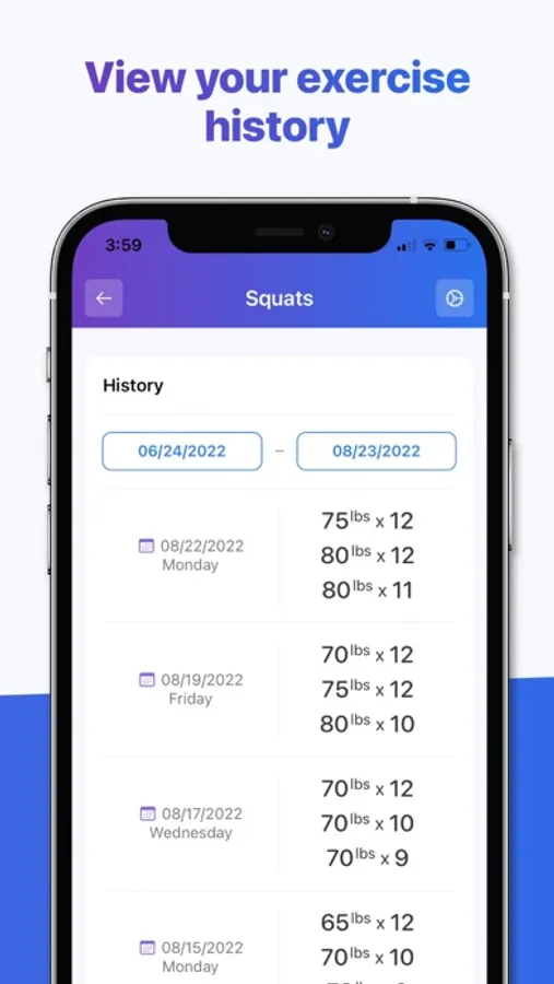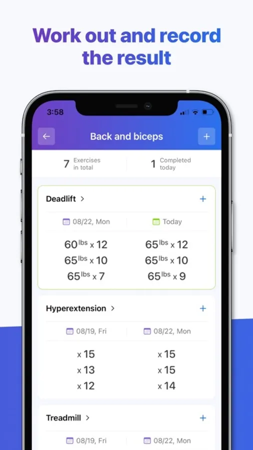 ⁃ Performance history for each exercise. View the history for any period to see the progress. If you entered incorrect data by mistake, then you can change, delete or move it to another date.