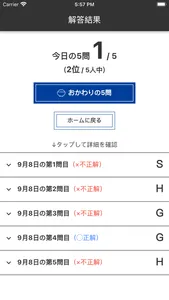 ・ウォーミングアップがてらの「今日の5問」機能