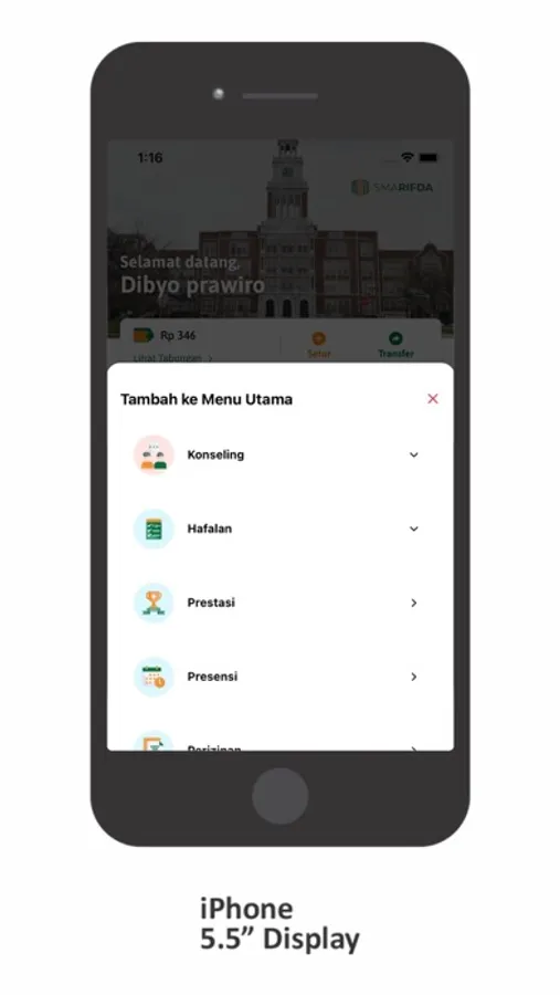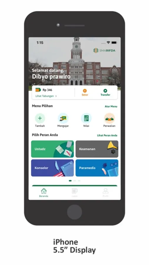Solusi Manajemen Sekolah Lengkap di SMARIFDA menggunakan Aplikasi manajemen dan akses ke berbagai laporan terkait sekolah. Aplikasi ini digunakan oleh guru, staff TU, kepala sekolah, konselor (guru BK), tenaga kesehatan, keamanan, pustakawan dan sebagainya untuk mengelola sekolah serta wali murid beserta anaknya dalam mengakses layanan dan laporan terkait belajar mengajar maupun keuangan sekolah di SMARIFDA.