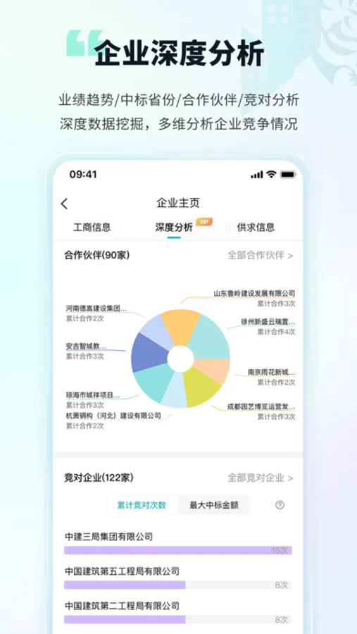 土筑虎是中国建筑行业数据服务平台。目前有网页版、移动版、微信小程序、APP版等多个服务终端,提供全国建筑企业的招标信息、中标信息、查企业、查业绩、查资质、查荣誉、查人员、工商信息、法律诉讼、劳务分包、招采信息、机械租售、产品供应等多维度服务的一款应用。