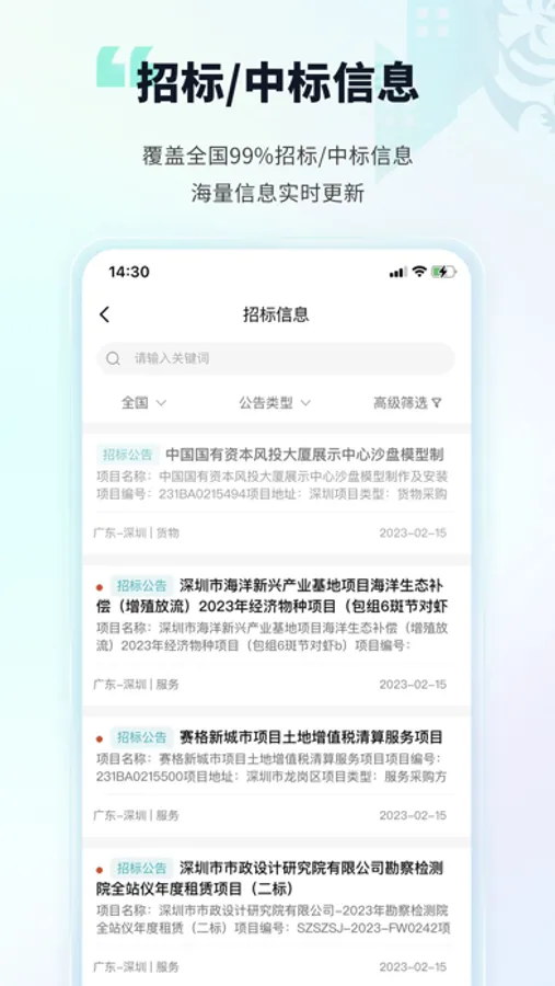招标信息/中标信息:覆盖全国99%招标、中标信息,海量信息实时更新,找项目找商机;