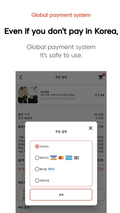 - Korean/overseas credit cards, Paypal, Visa, Mastercard, American Express, Discover & Diners, China UnionPay,