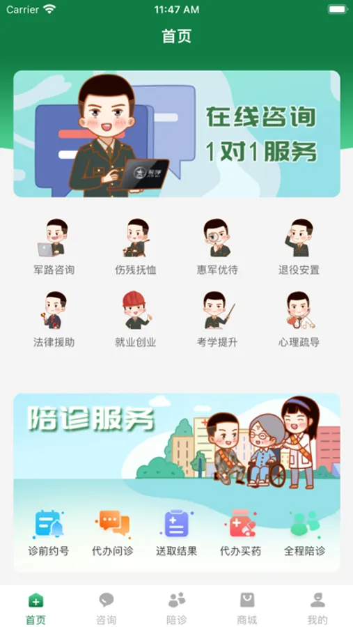 君呼,是由南京军路文化传媒有限公司所打造的,集兵哥陪诊、在线咨询、军路资讯、惠军商城等服务为一体的多元化、综合性、一站式移动互联网平台。