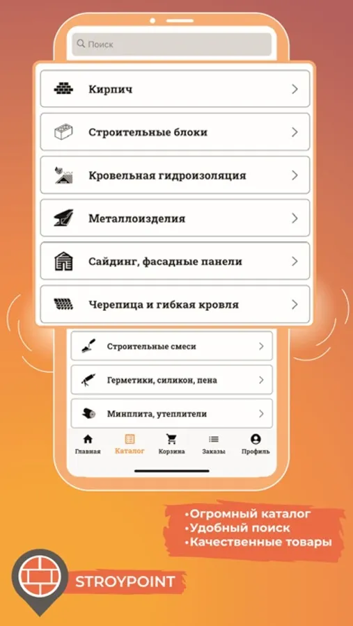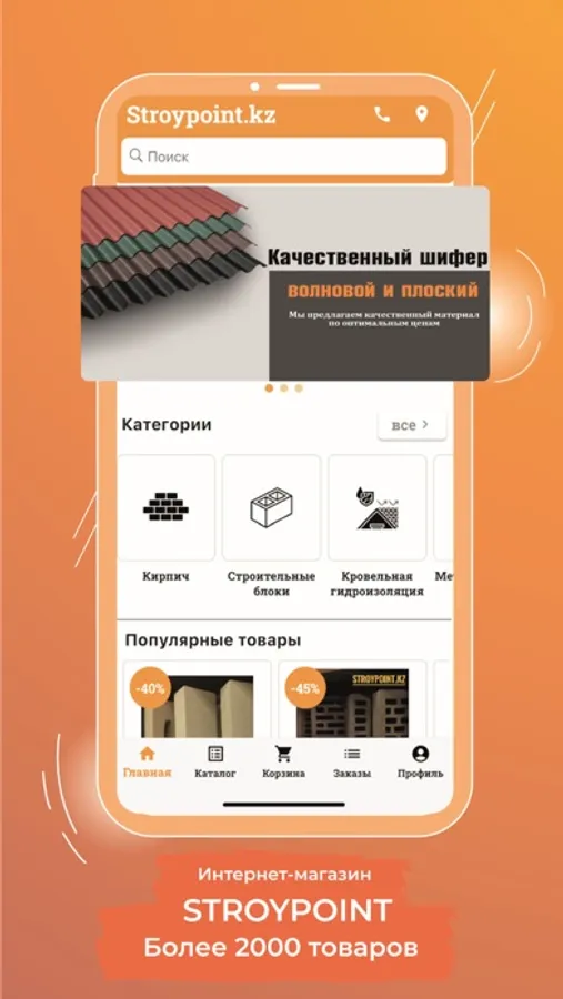 Наше приложение поможет вам даже с мобильного приложения заказать необходимые строительные материалы. В нашем ассортименте более 2000 товаров, которые всегда в наличии.