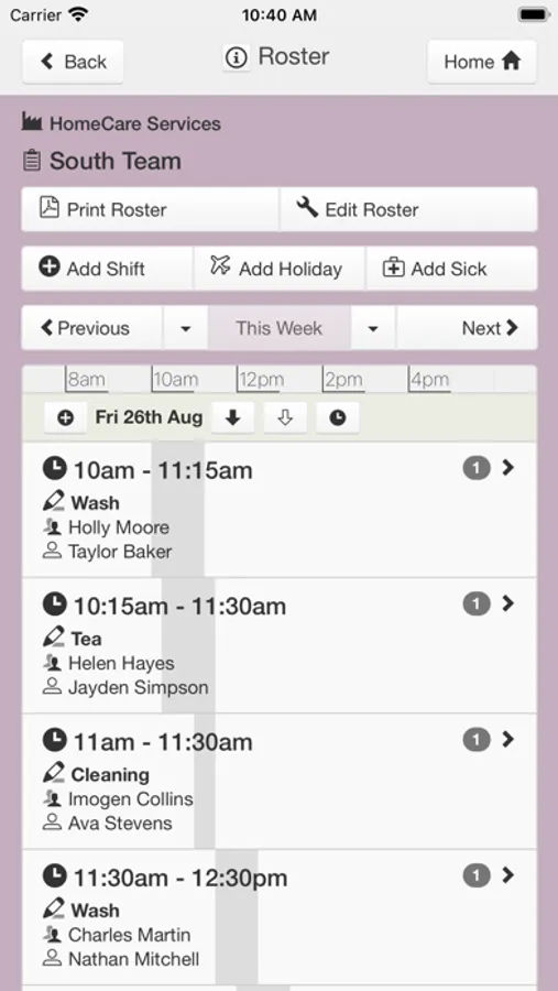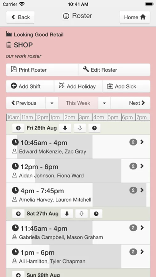Our intuitive drag 'n' drop real-time web app makes rostering a breeze for managers. Staff and shifts can be scheduled with ease, with the ability to add holidays and sick leave, set shifts to repeat automatically, and assign staff to shifts. Plus, our online system puts the roster at your fingertips, allowing all staff members to access it from any computer or device.