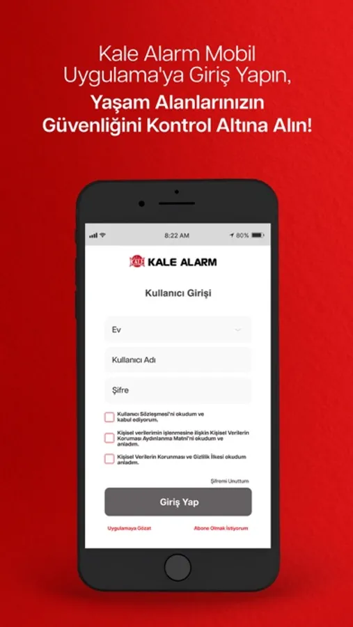 Kale Alarm abonesi olun ya da olmayın uygulamamızı kullanabilirsiniz.